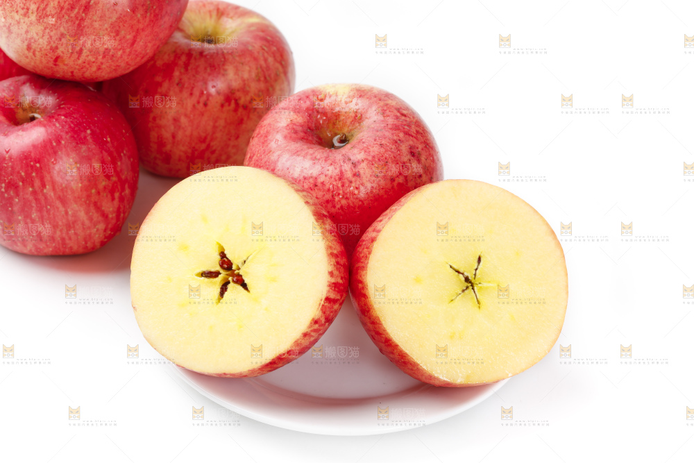 白底上放着红富士苹果
