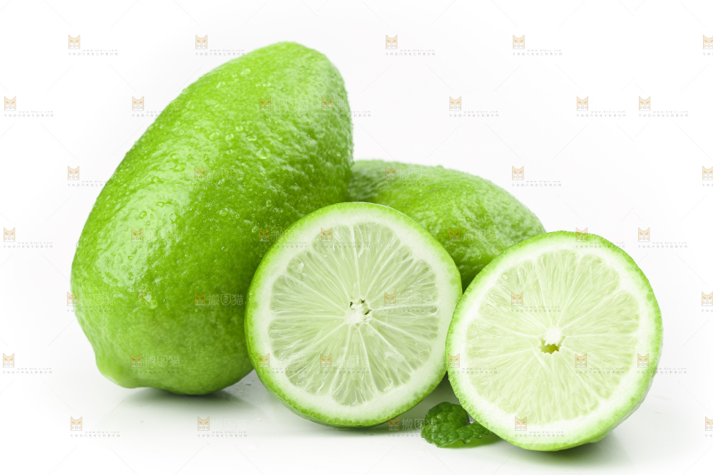 白底上放着青柠檬