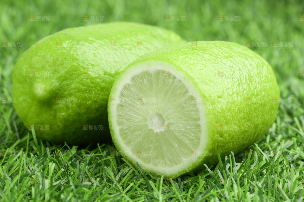 草地上放着香水青柠檬