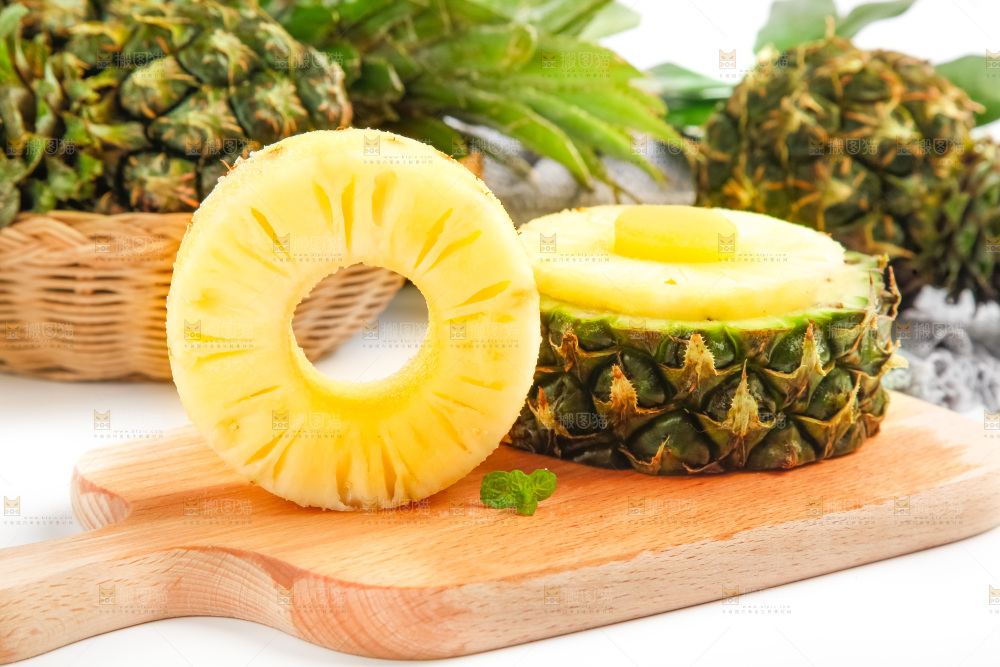 木板上摆放着泰国迷你小菠萝
