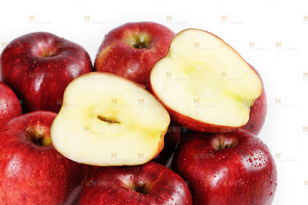 白底上放着花牛苹果