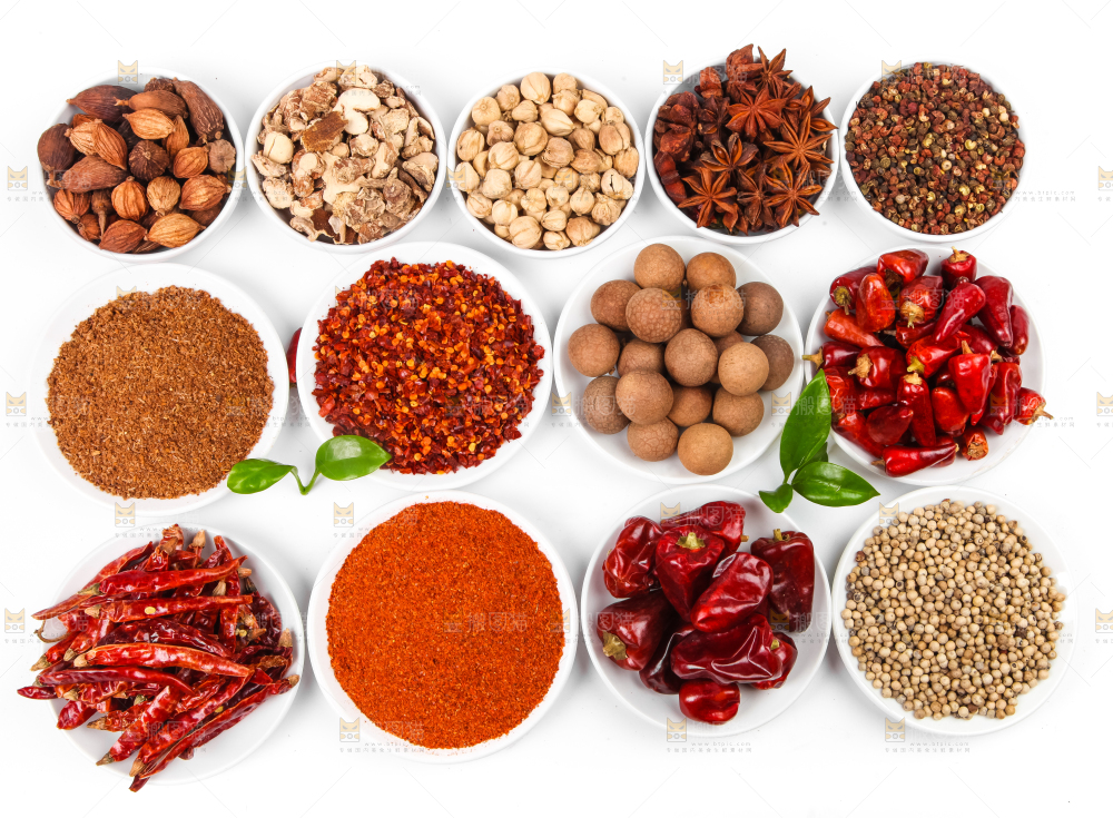 白底上放着香料组合