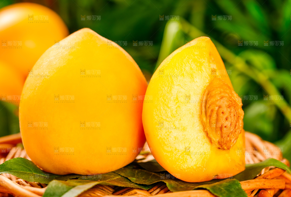 篮子上摆放着新鲜黄桃