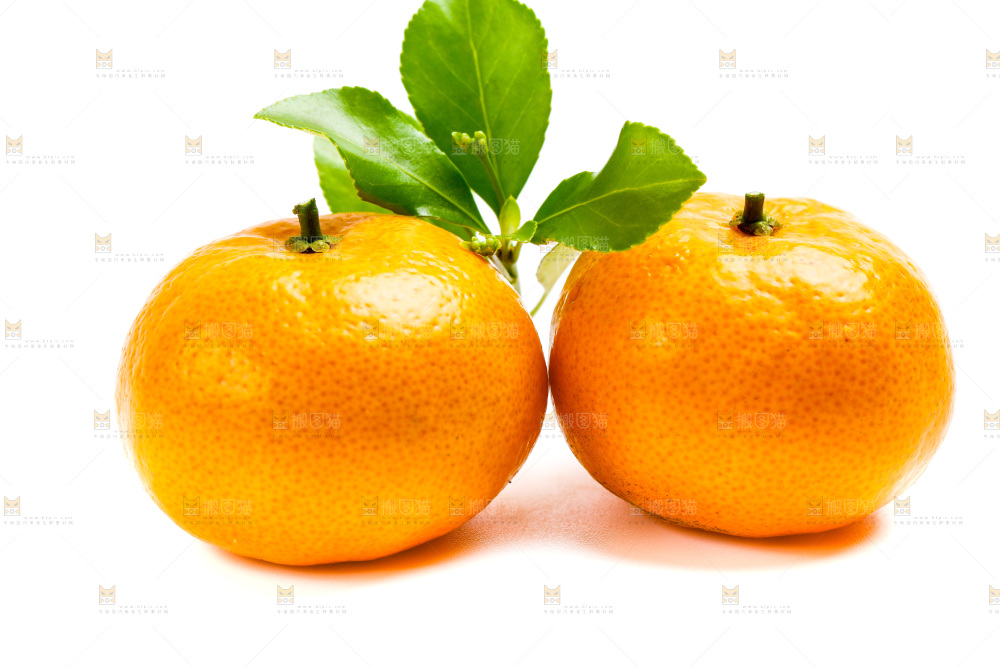 新鲜橘子放在白底上