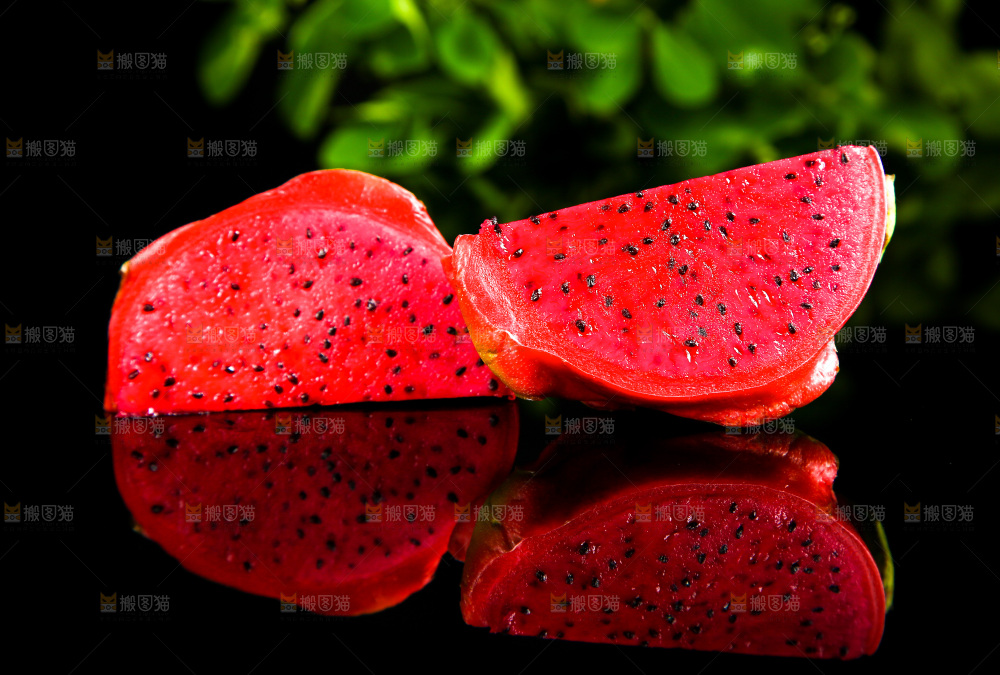 黑底上放着海南红心火龙果