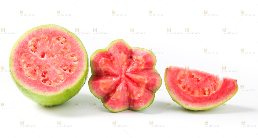 白底上放着红心番石榴