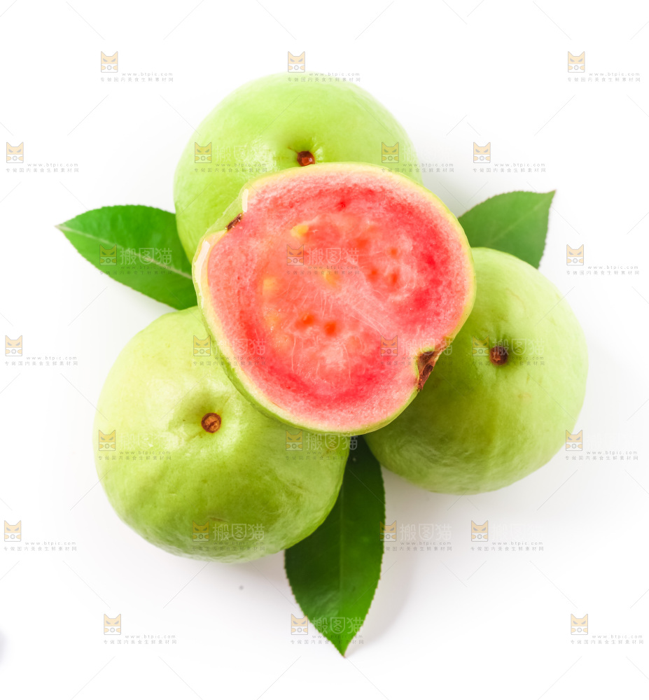 白底上摆放着红心番石榴