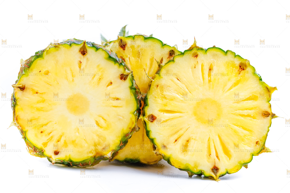 白底上放着菠萝切块