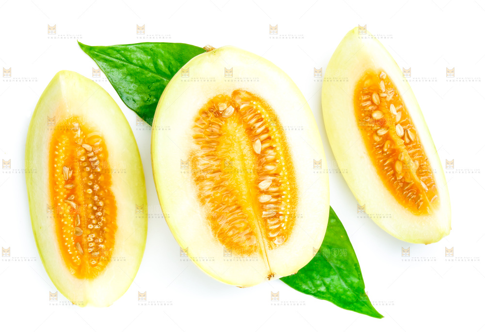 白底上放着切开的香瓜