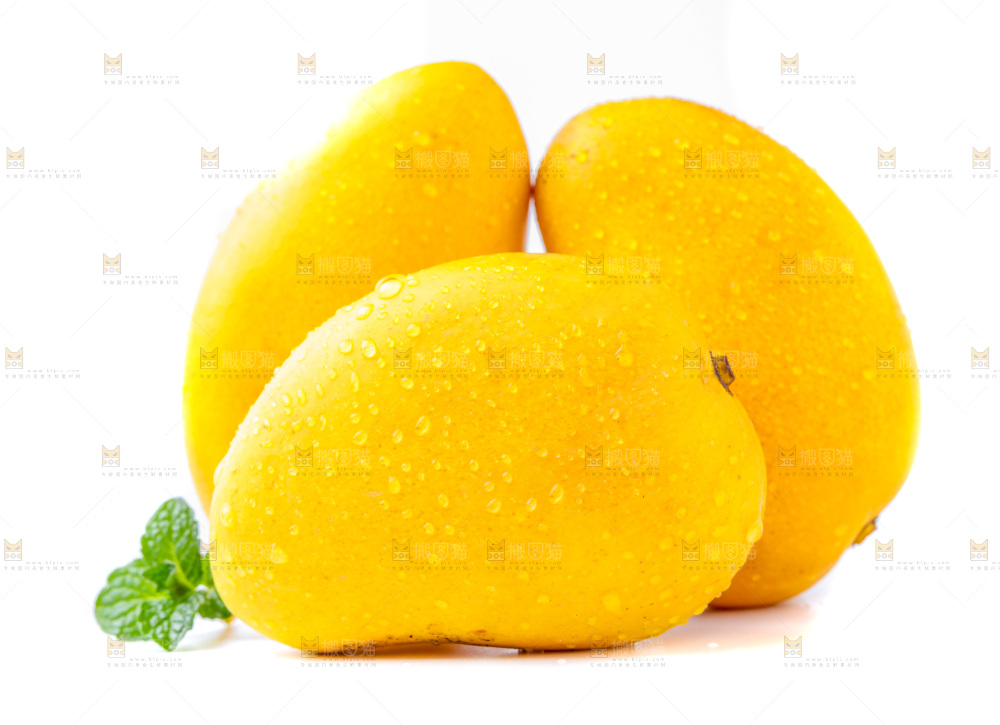 白底上放着芒果