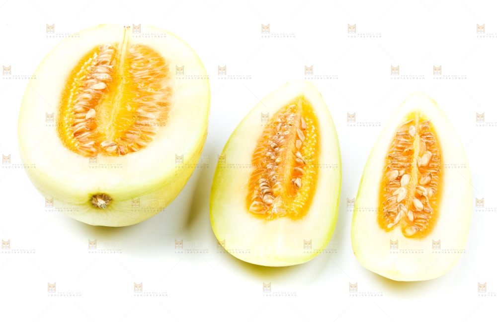 白底上放着切开的香瓜