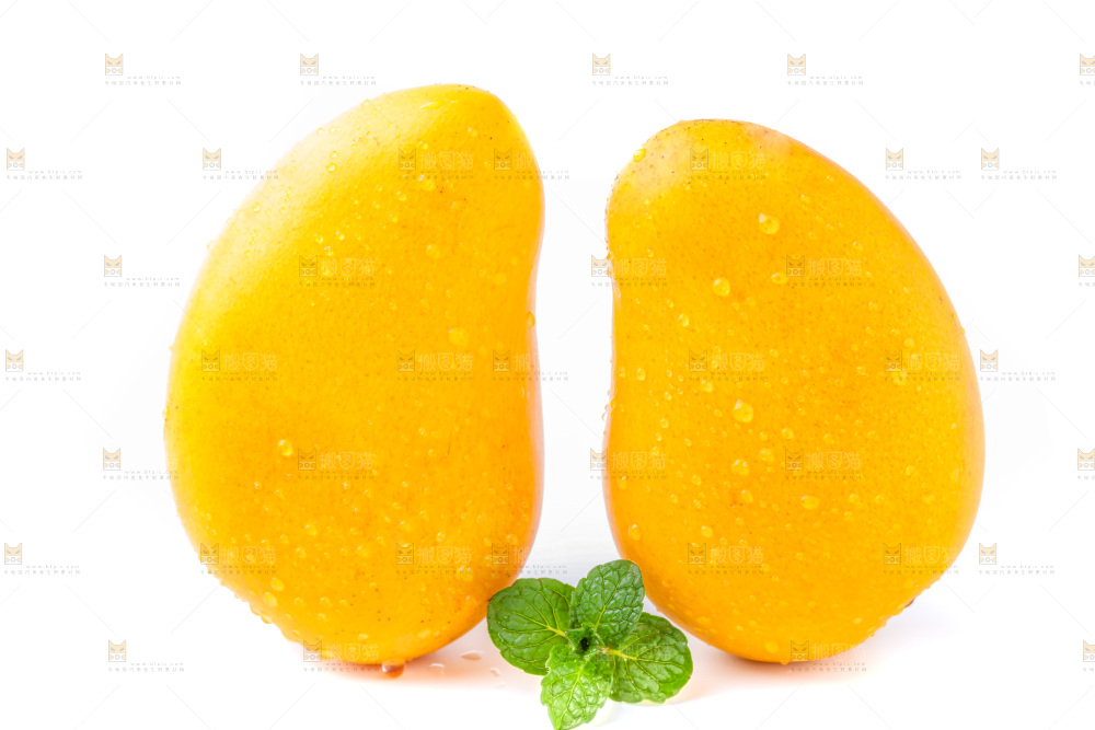 白底上放着芒果