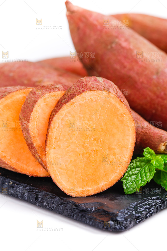 木板上放着红薯