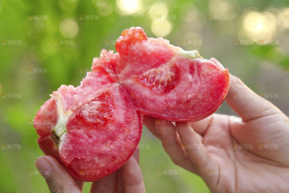 手里拿着沙瓤番茄