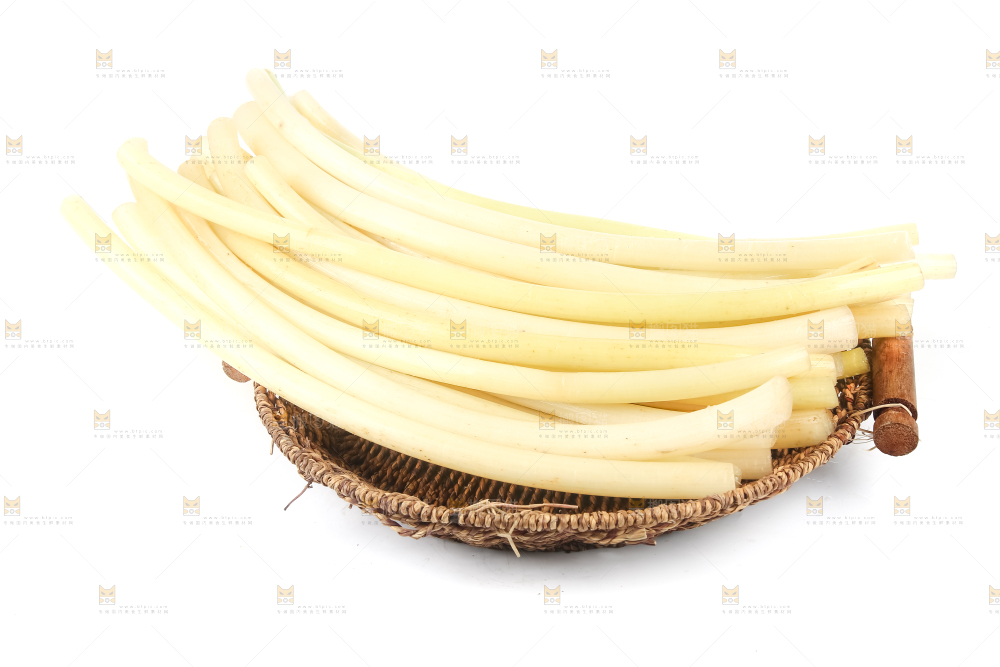 白底上摆放着新鲜藕带