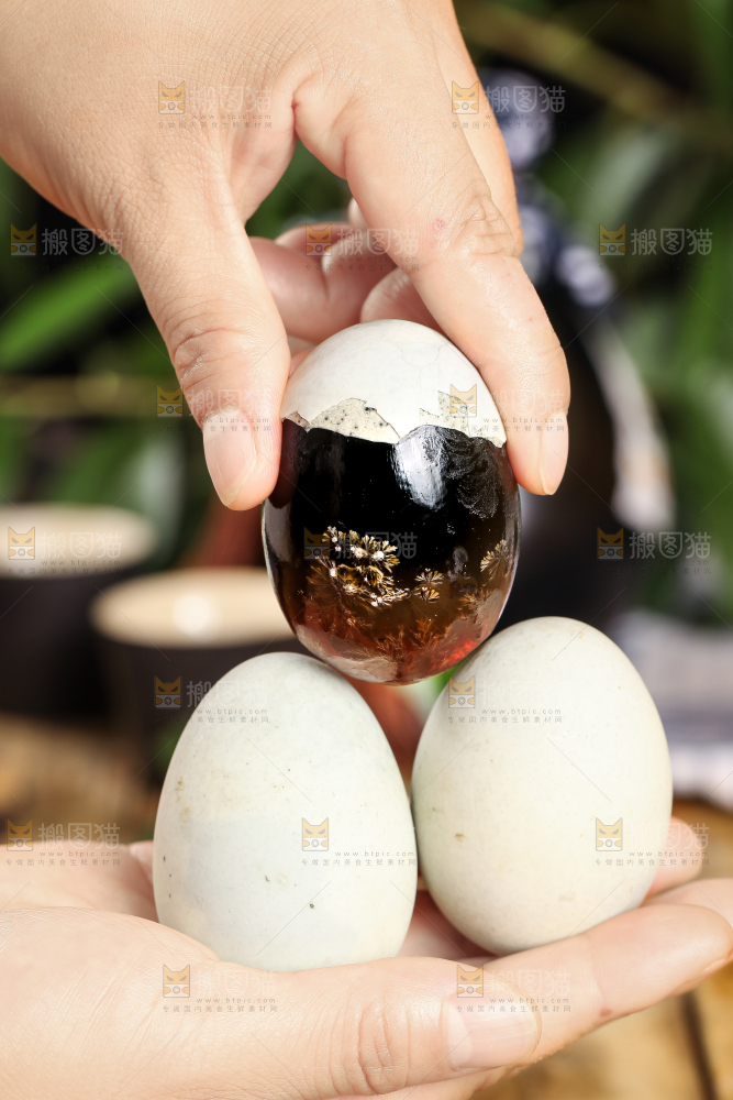 木底上摆放着皮鸭蛋