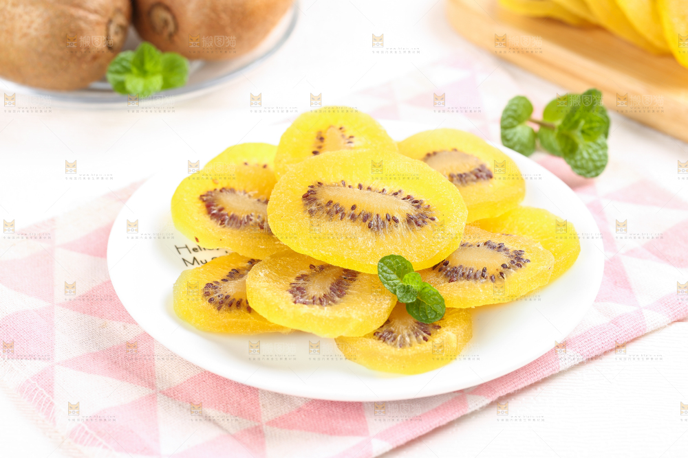 浅底上的黄心猕猴桃干