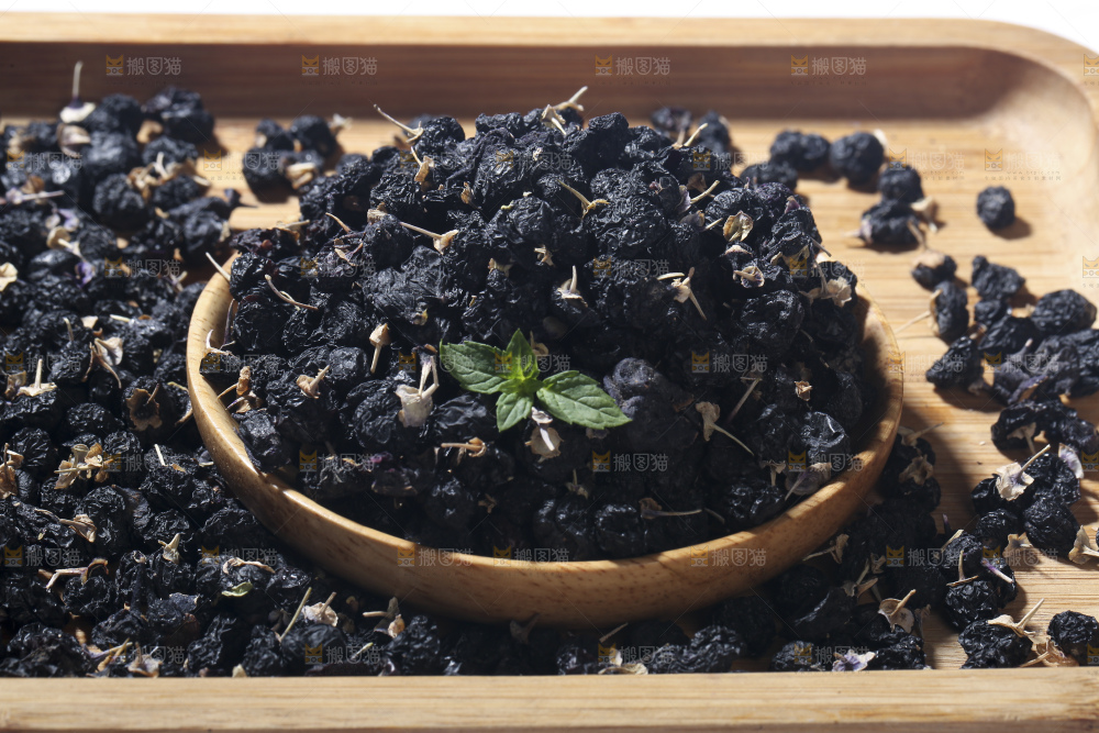 木底上放着黑枸杞