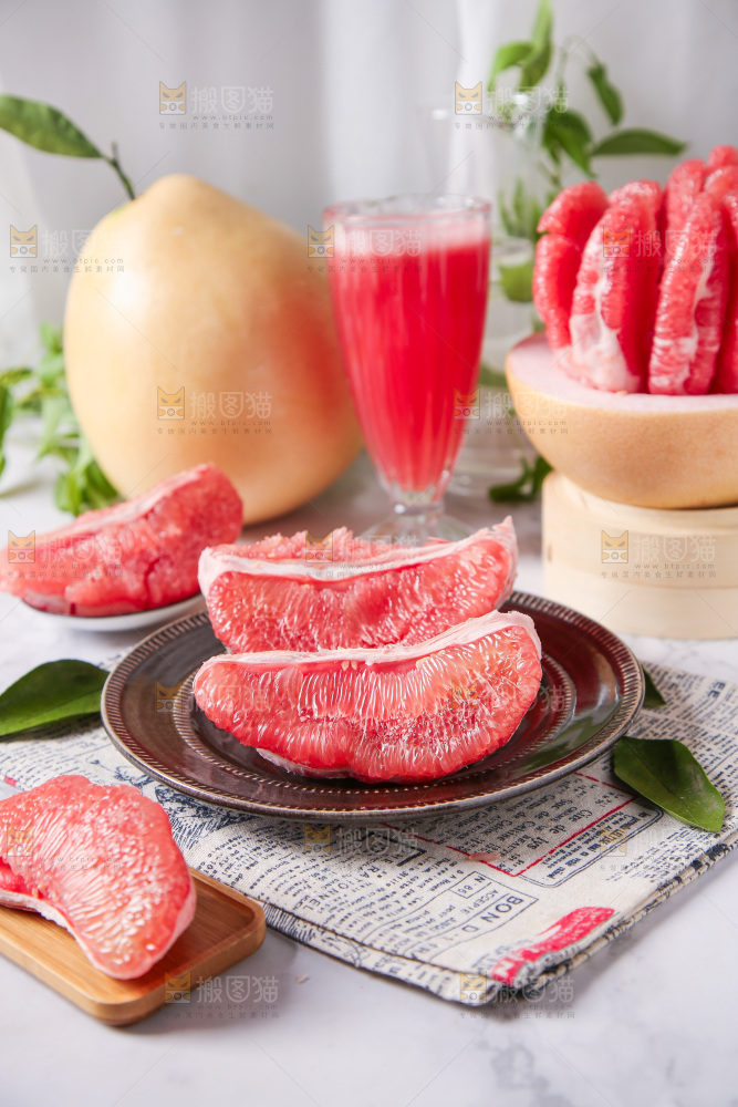 深底上的红心蜜柚果肉