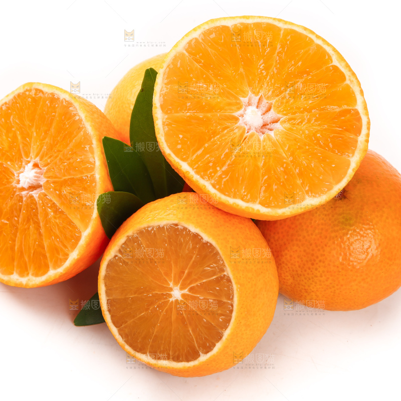 白底上的爱媛果冻橙和果冻橙果肉