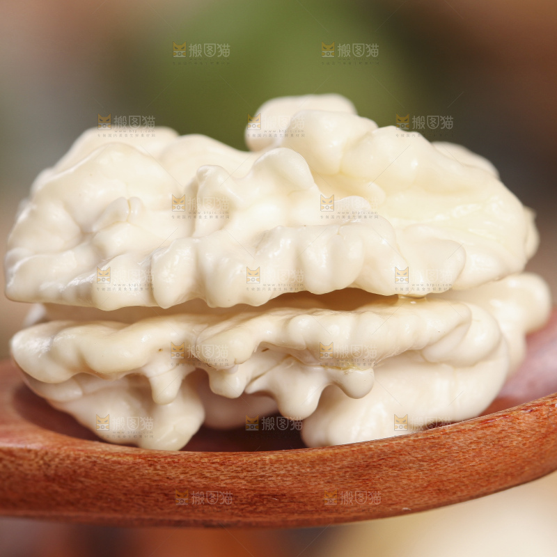 勺子里的新鲜湿核桃果仁