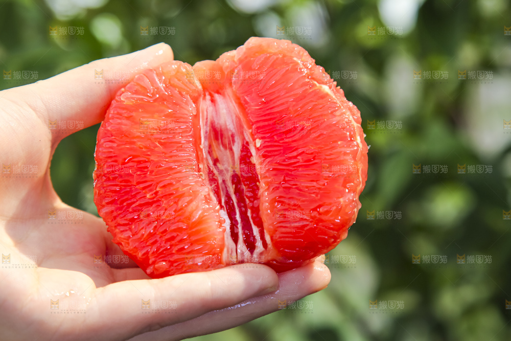 手拿着剥皮的红心葡萄柚果肉