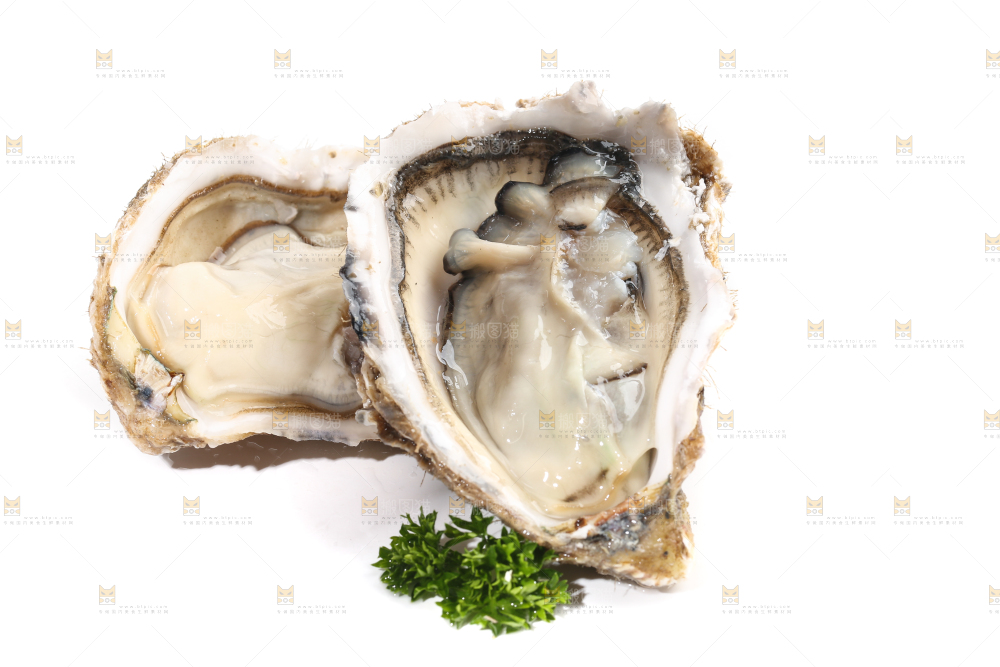 白底上剥开的牡蛎