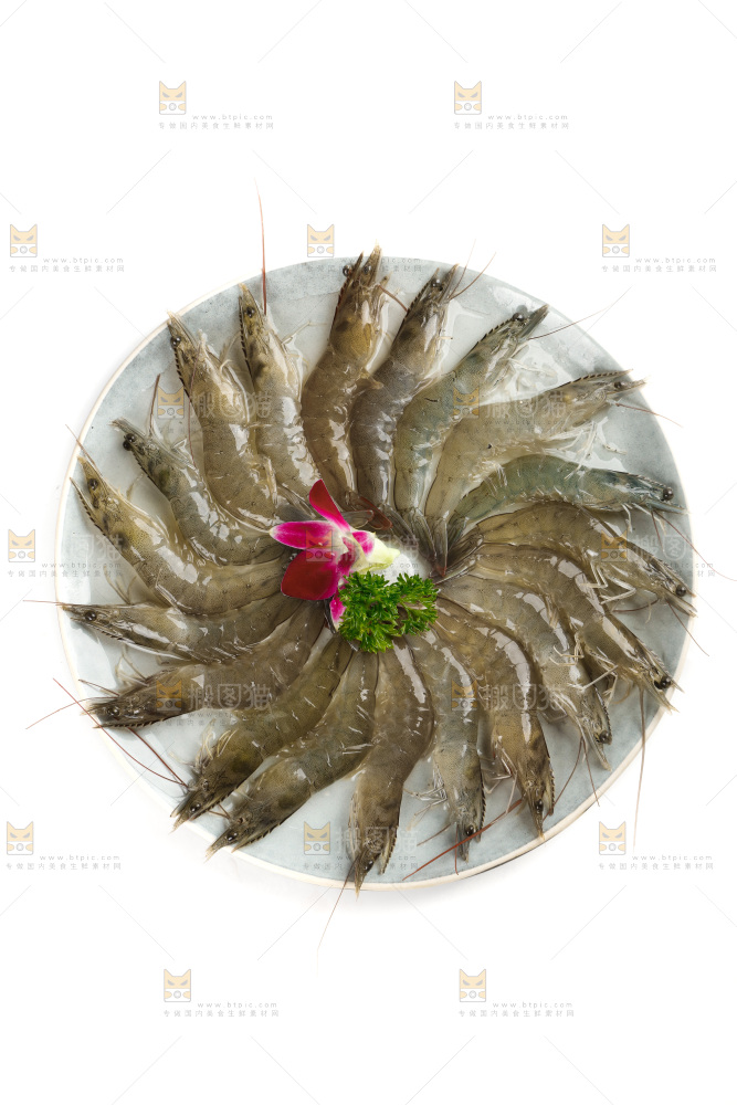 碟子里摆放着基围虾