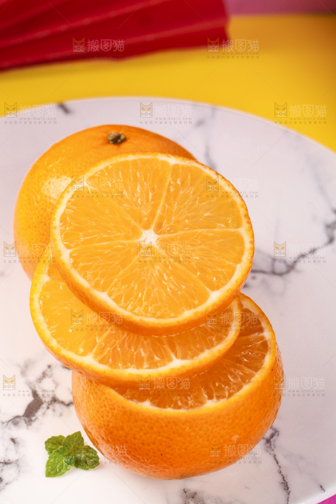 盘子里放着切开的贡柑
