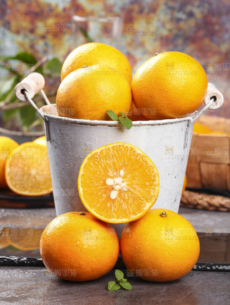 黑石板上放着一桶皇帝柑