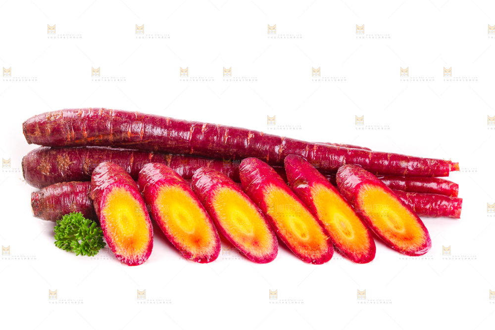 白底上放着紫胡萝卜