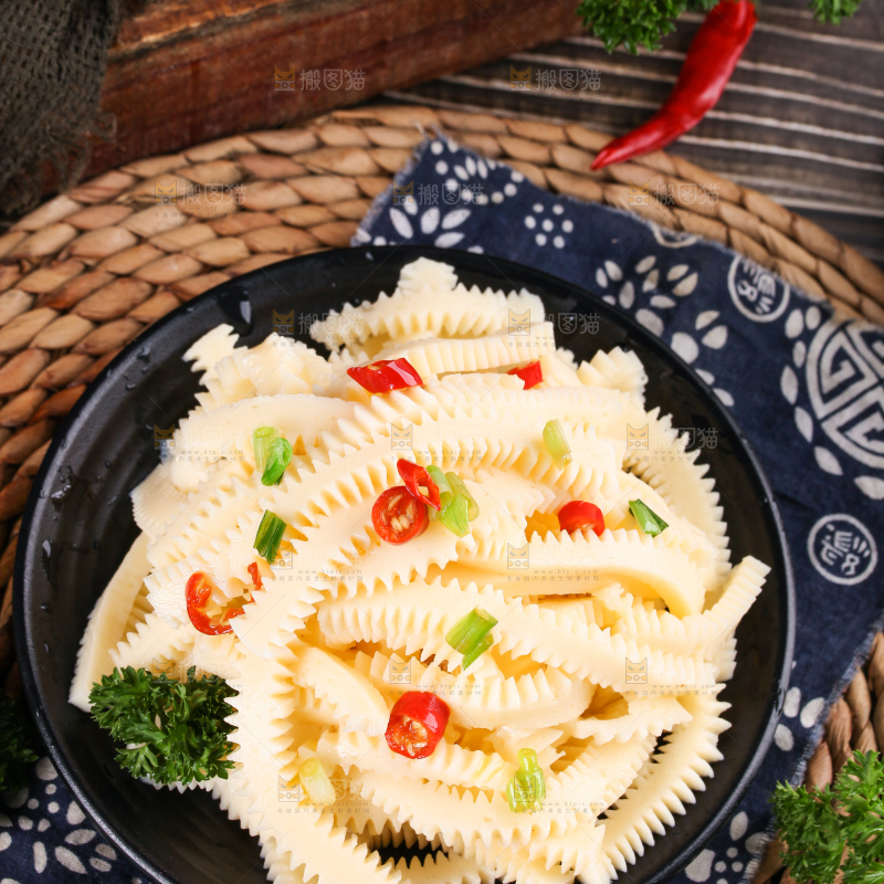 盘子里装着魔芋素肚条
