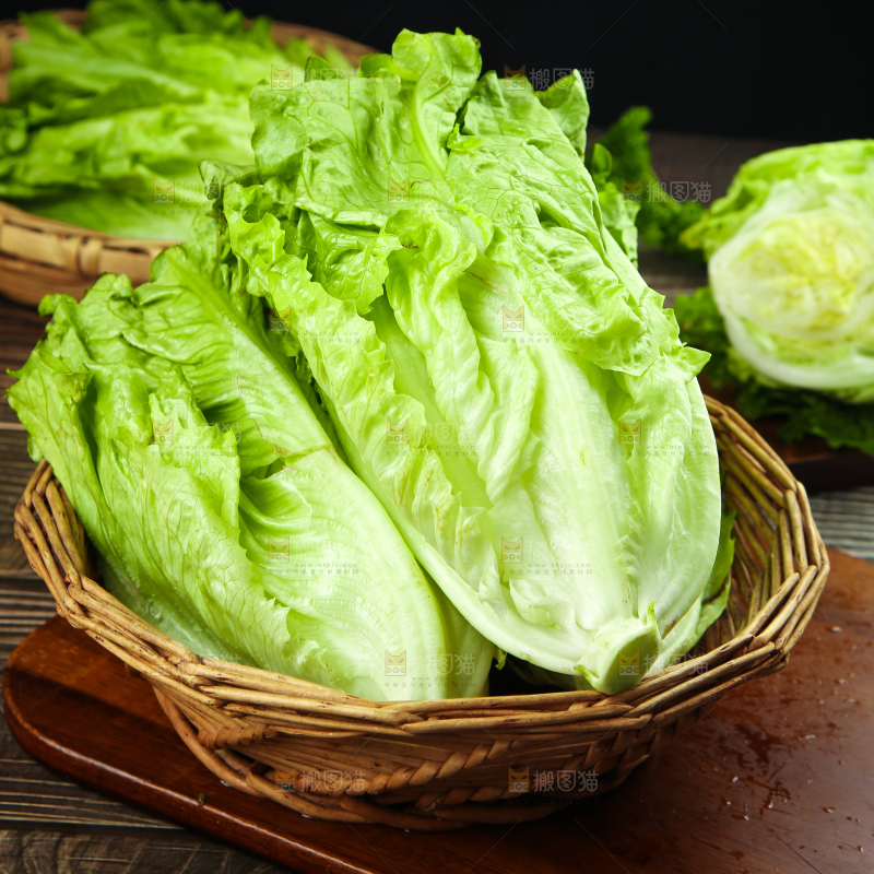 木板上放着新鲜生菜
