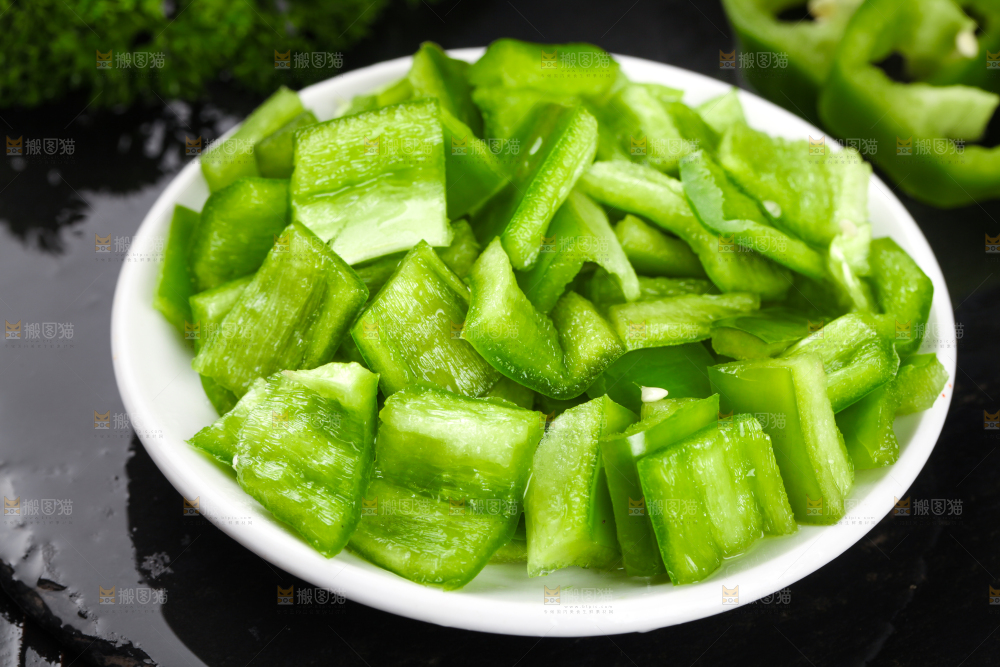 盘子里装着青椒块
