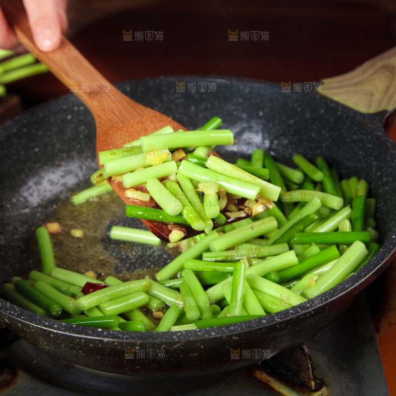 锅里正在炒的蒜苔