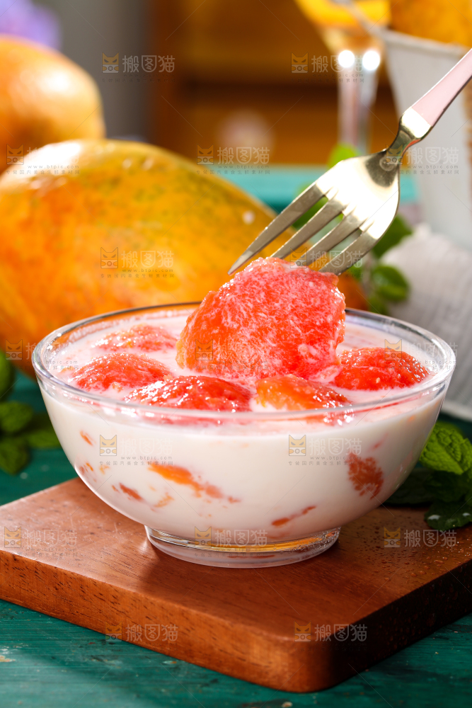 碗里装着牛奶木瓜