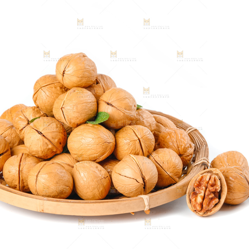 白底上放着一筐烤核桃