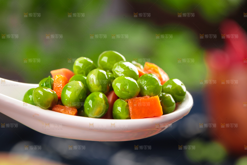 勺子里的炒豌豆粒