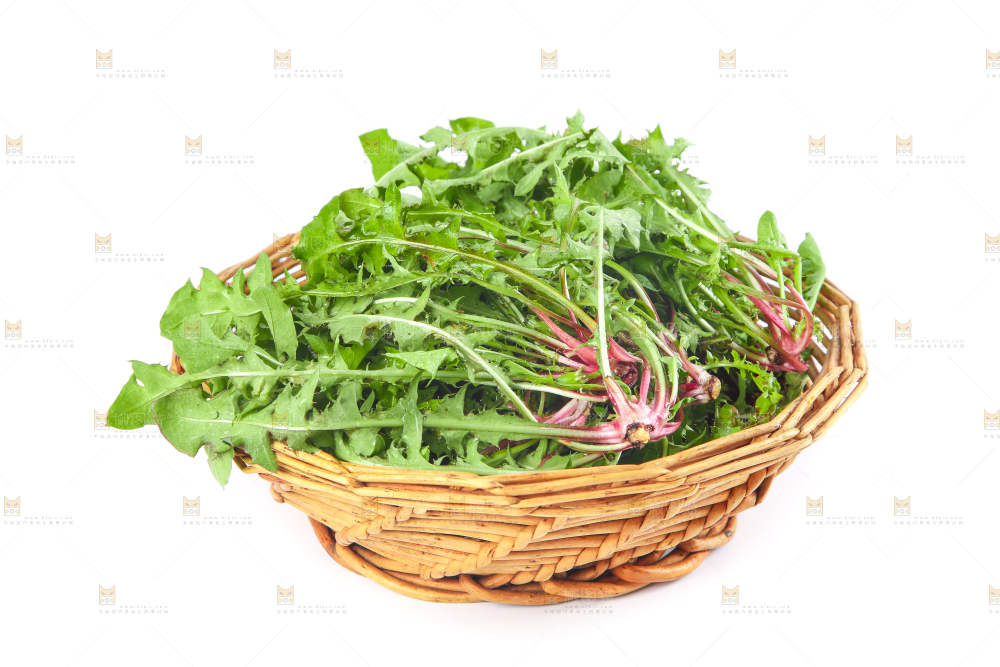 一筐蒲公英放在白底上