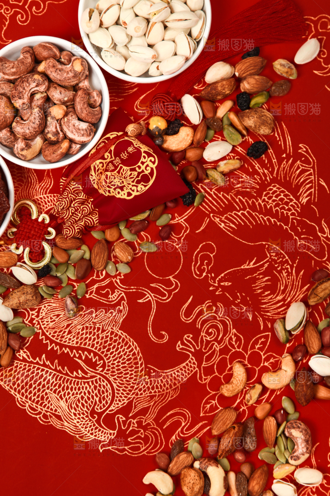 红底上的坚果素材
