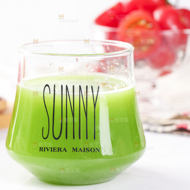 杯子里装着黄瓜榨的果汁