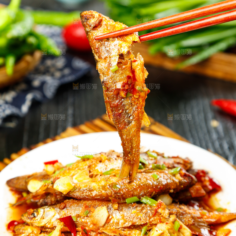 盘子里装着香煎小刁鱼