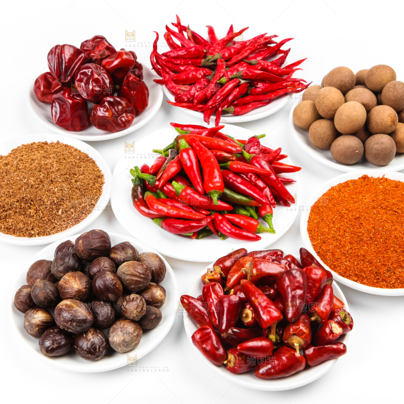 白底上放着香料组合