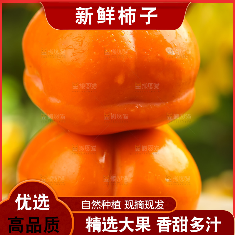 新鲜磨盘柿