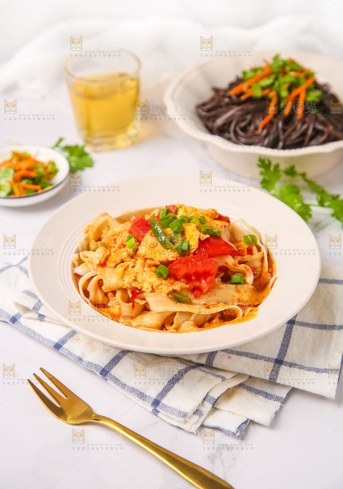 盘子里装着西红柿刀削面