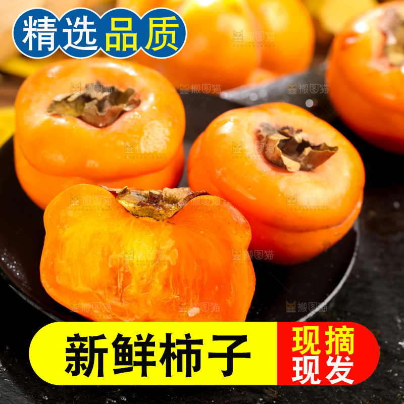 新鲜磨盘柿