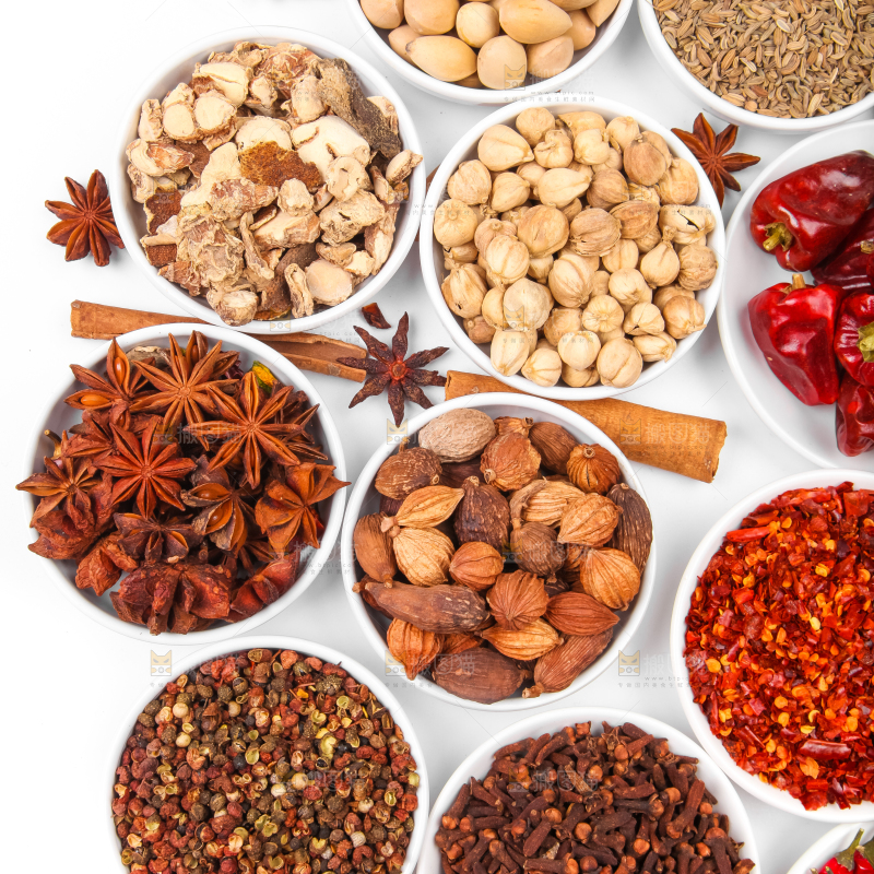 白底上放着香料组合
