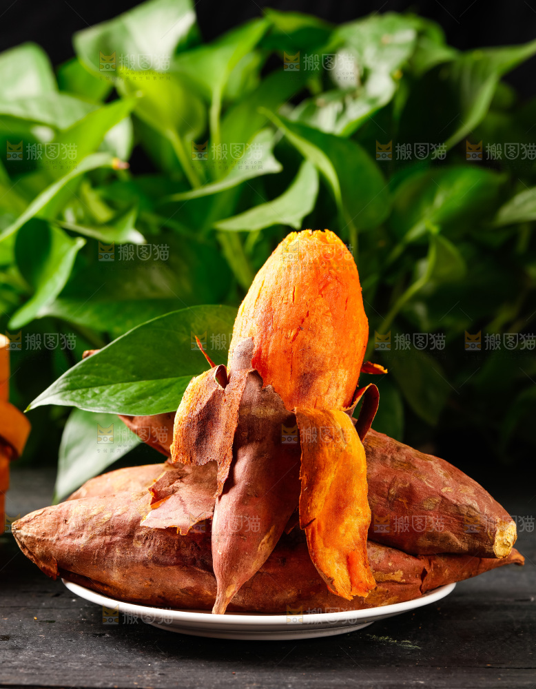盘子里装着红心蜜薯