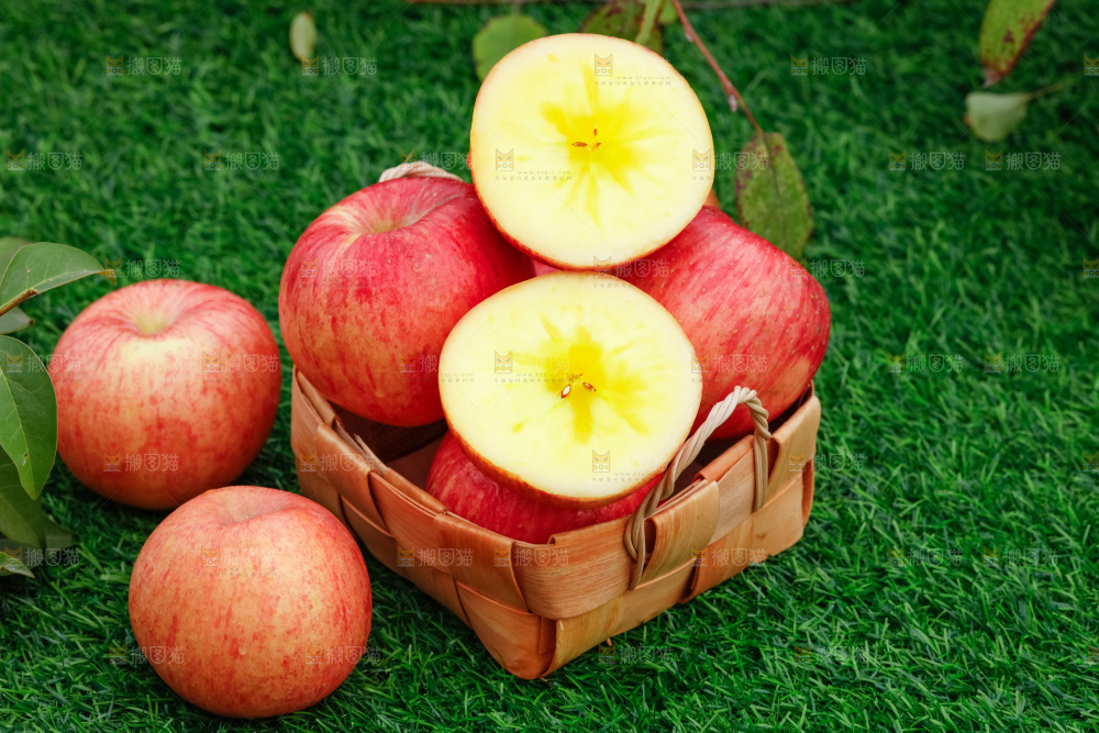 草地上放着冰糖心苹果