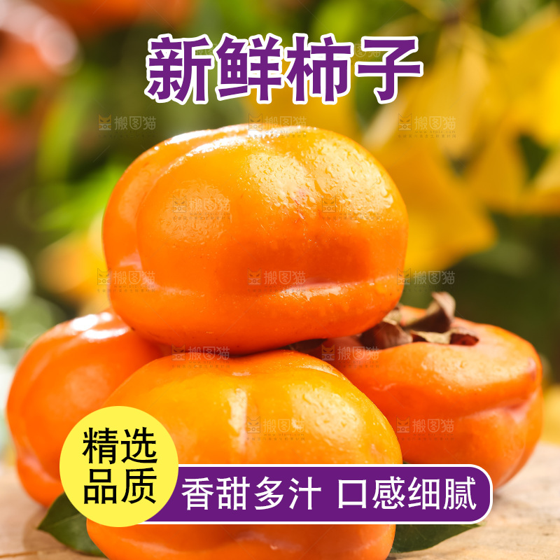 新鲜磨盘柿